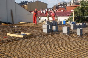 Ten strop ma trzymać w ryzach cała nadbudowę, samego betonu będzie ponad pięćdziesiąt ton, trudno mi to sobie wyobrazić… Tam gdzie stoją robotnicy, będzie mój taras- na drugim planie widać lipę, której zapach będę sobie wdychać w długie, letnie wieczory, takie jak dziś :)