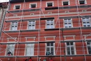 Tu dziś rano jeszcze ubrana w rusztowania…To jednak można zrobić już bez rusztowań, bo opłaty za zajęcie chodnika na rusztowania są zdecydowanie za wysokie.