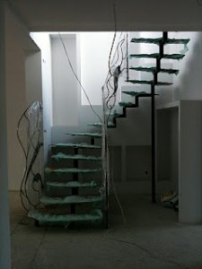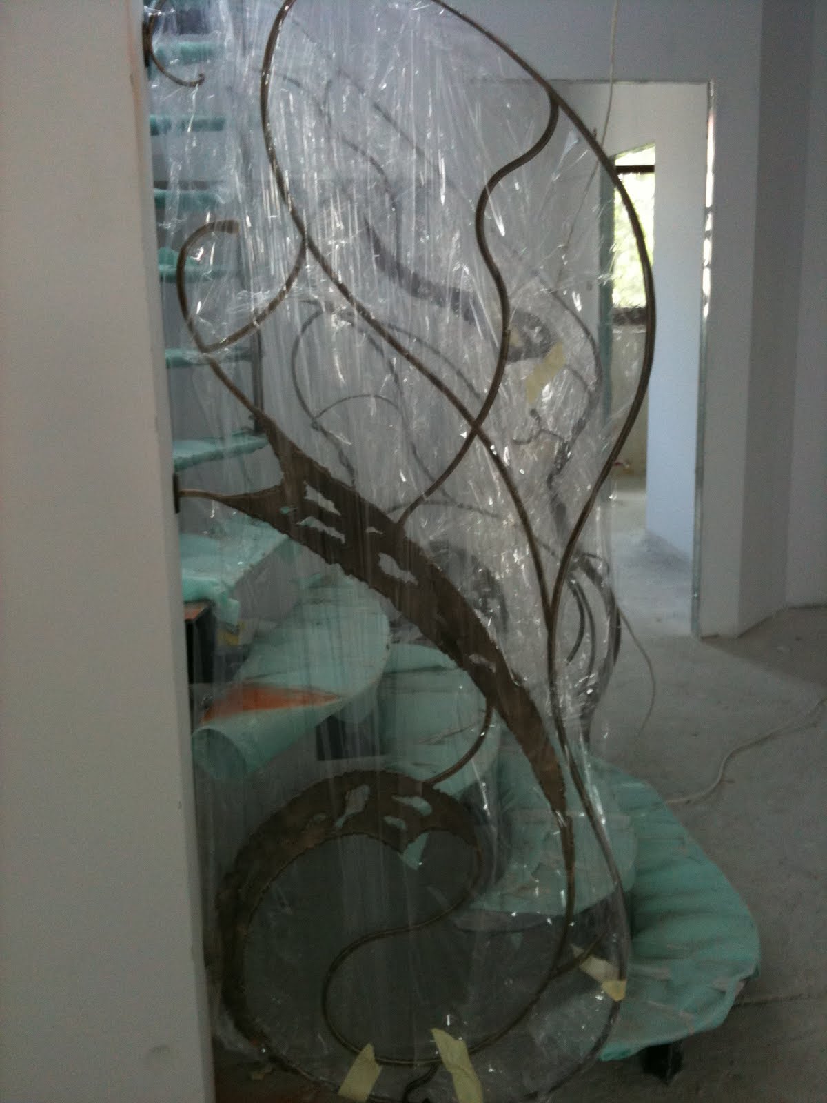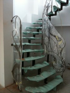Nie mają jeszcze pięknie wyciętych drewnianych stopni, balustrada i konstrukcja owinięte folią skutecznie chowają się ze swoją urodą, ale od czego wyobraźnia? :)