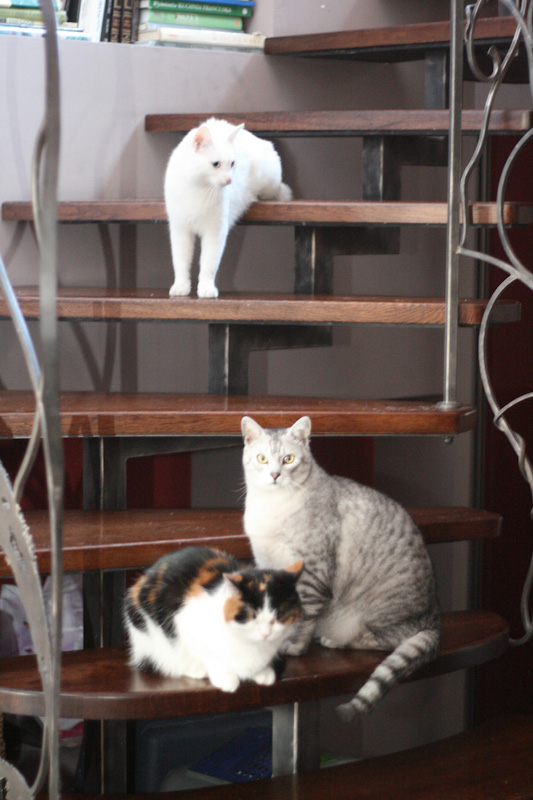 Koty na schodach czekają na rozwój sytuacji:
