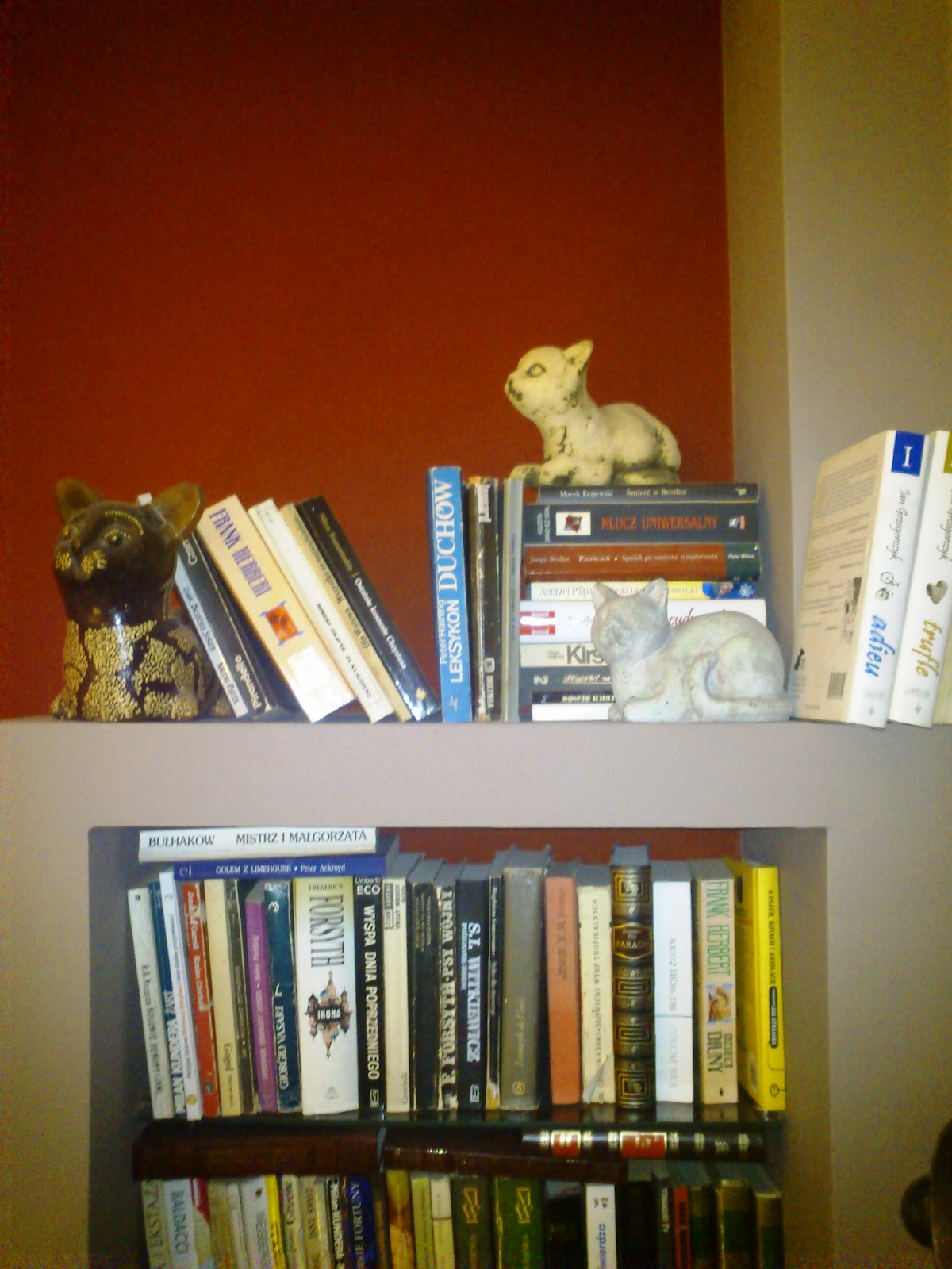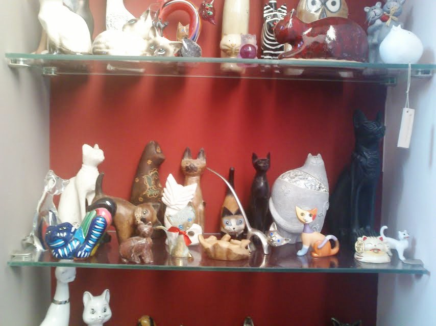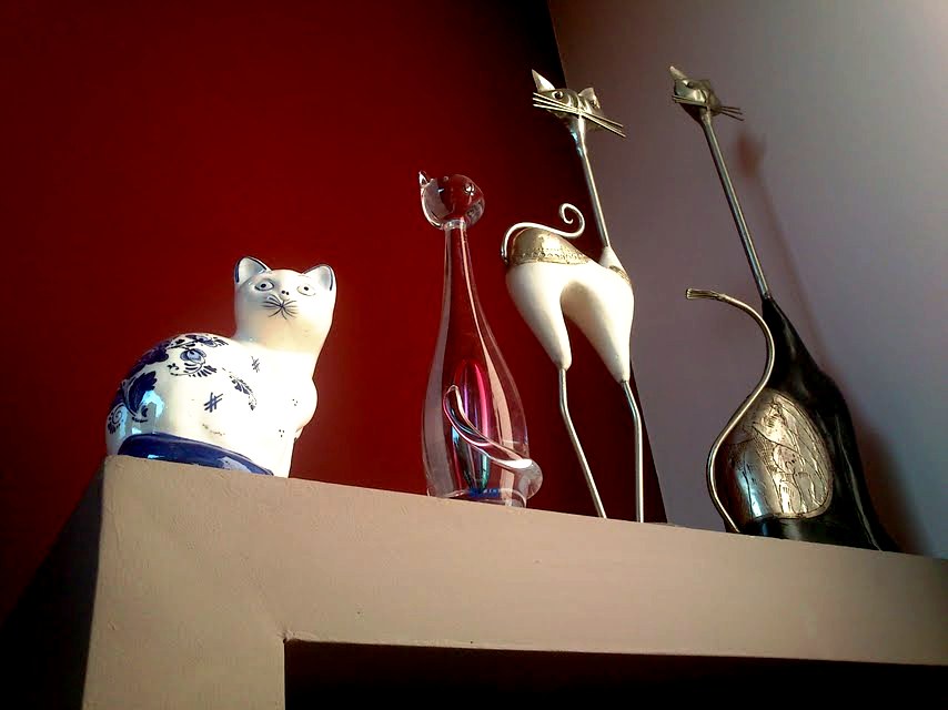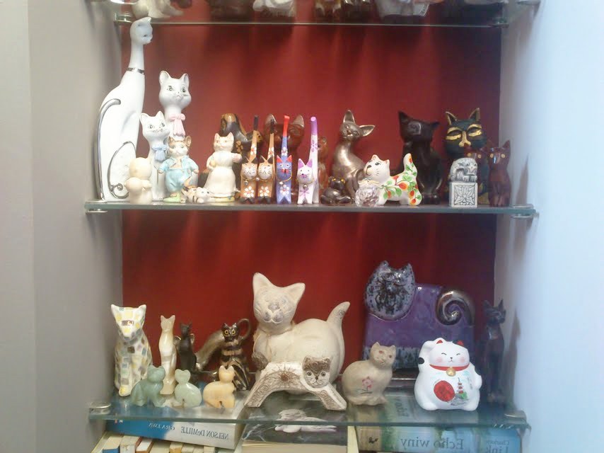 Lubię, gdy kot jest rękodziełem, gdy jest charakterystyczny dla danego kraju, czy regionu, gdy jest niepowtarzalny, jak każdy kot. Ale kolekcja moich kotów made in China cieszy mnie niezmiernie- osobno przywiezione z Malediwów, Holandii i Krościenka odnalazły się na mojej półce, czyż to nie cudowne zrządzenie kociego losu?