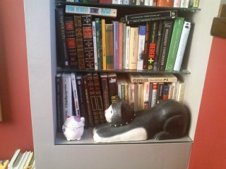 Kot z lewej z Lomboku, kot na książkach od Tośka (wybacz Tosiek, ale to takie trochę kocie zombi :D, poniżej grzeczne kocisko ze sklepu „Wszystko za 4 zł”.