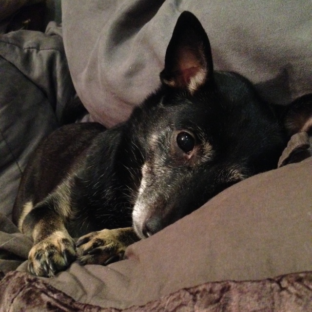 (Pies patrzy badawczo, kiedy udam się w stronę drzwi